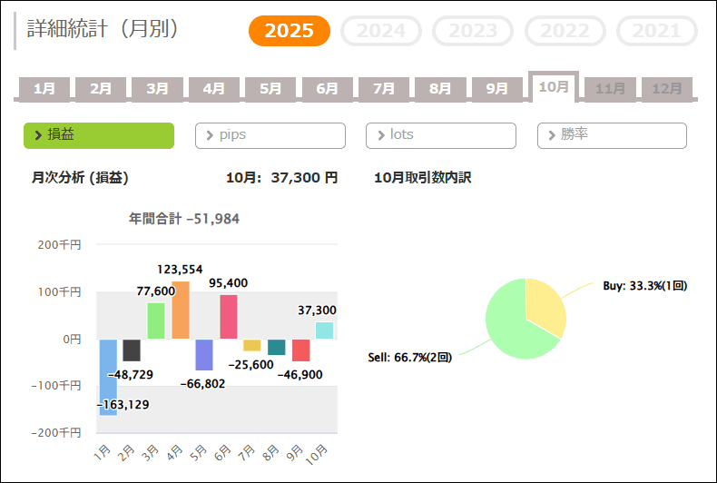 年間・月間の成績を見ると、勝ったり負けたりとなっています。