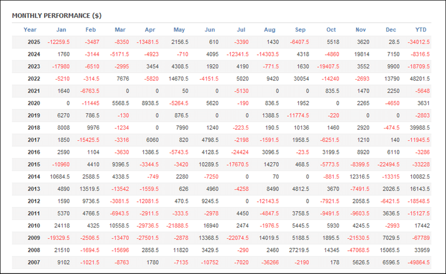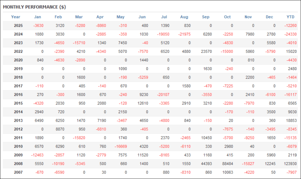 月次分析を見ると、2024年に何度か大きく勝っています。