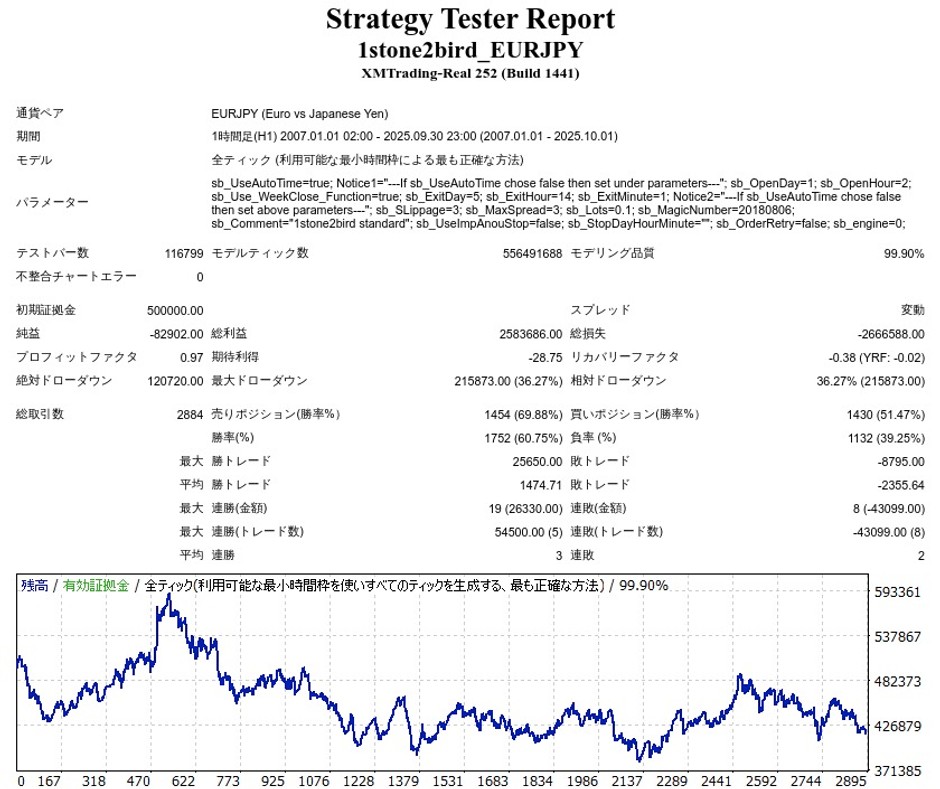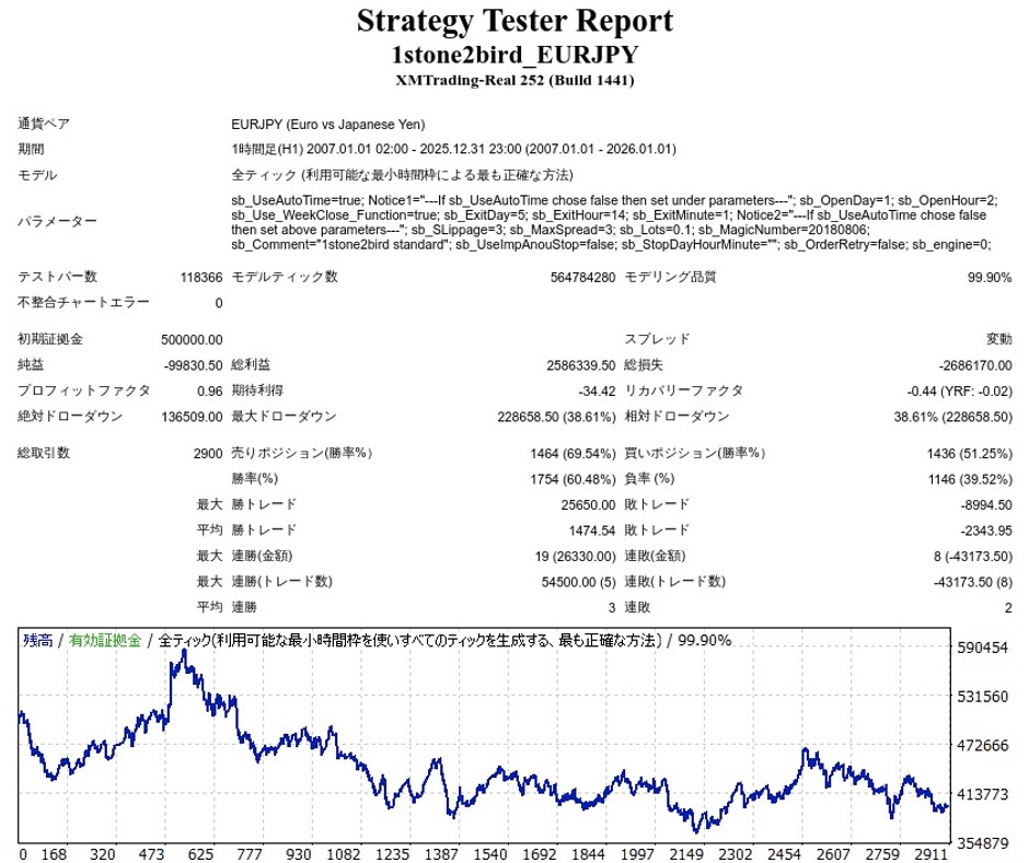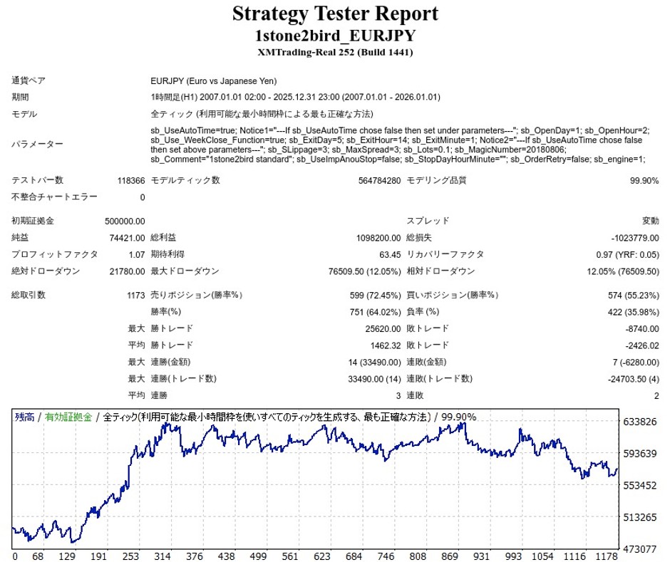 1石2鳥(スタンダート版)はEURJPY専用のEAですが、成績はどうなのでしょうか。