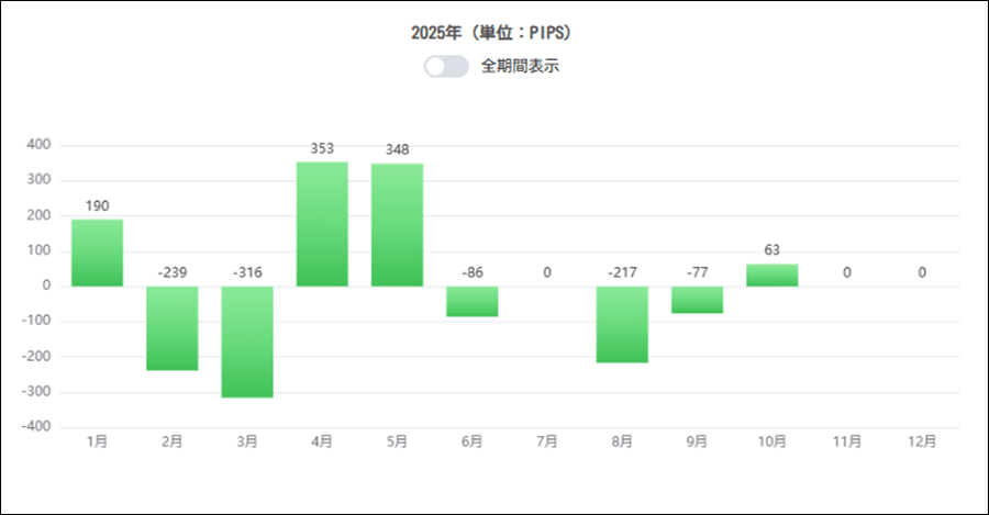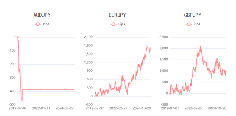 各通貨ペアの成績を見るとEURJPYとGBPJPYは利益が出ていますが、AUDJPYはマイナスとなっています。
