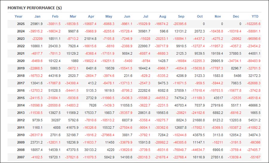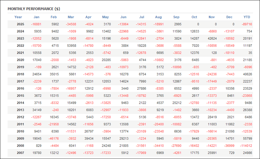 年間・月間の成績を見ると、2008年が大きくマイナスになっています。