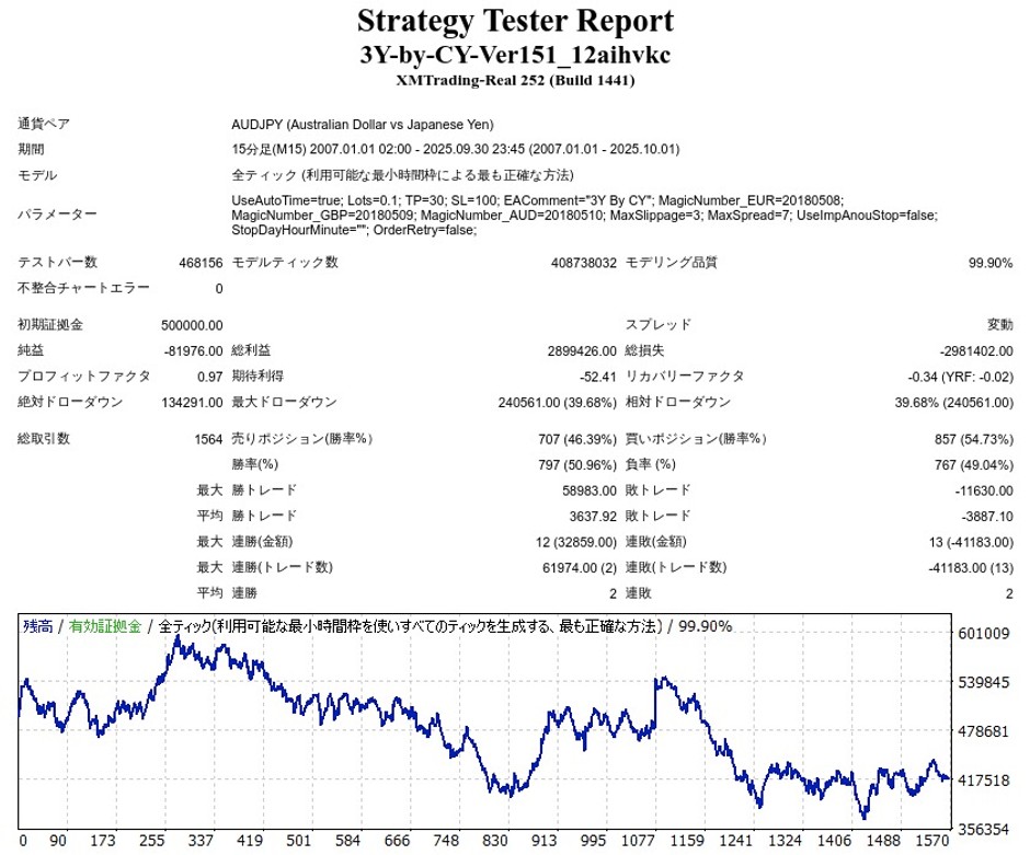 AUDJPYの成績はマイナスでした。リリース後の成績もマイナスで右肩下がりになっています。