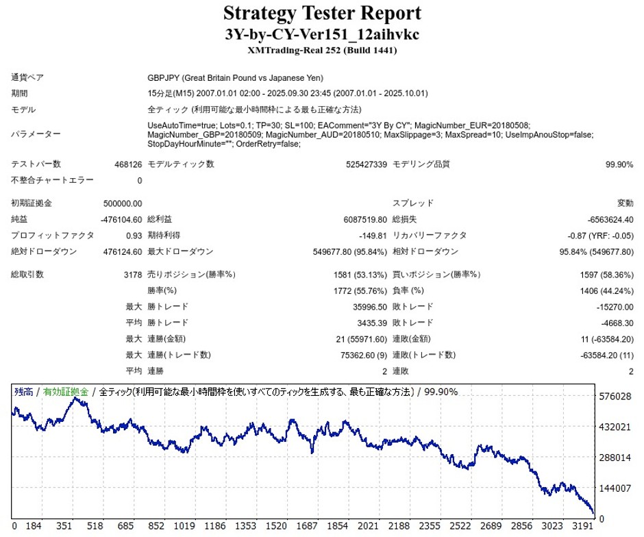 GBPJPYの成績も過去18年、リリース後もマイナスになっています。