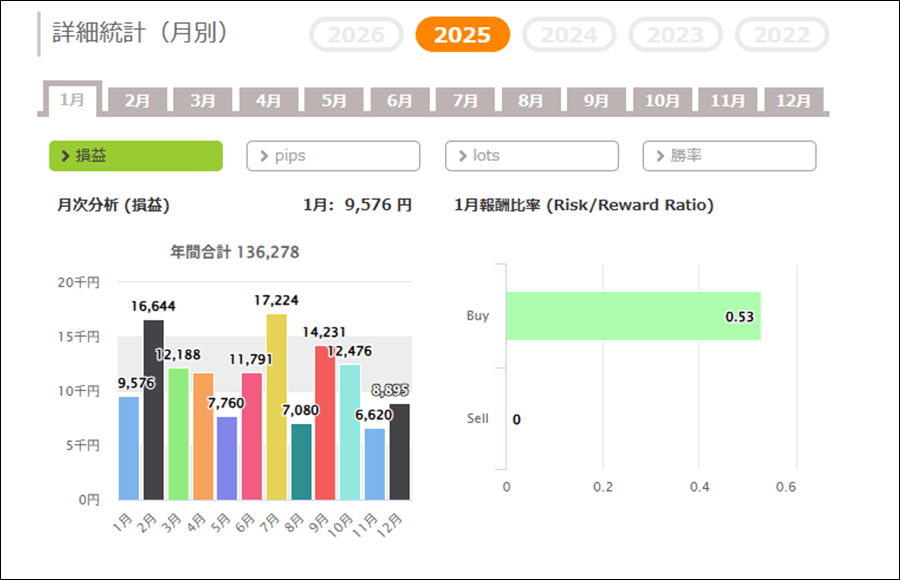 2022年~2025年の月間成績をまとめると合計で+22.1万円の成績となりました。