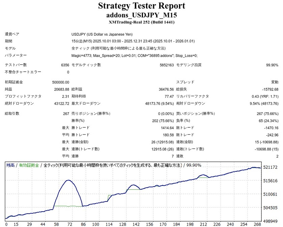 | 初期証拠金 | 500,000円 | 勝率 | 75.66% |