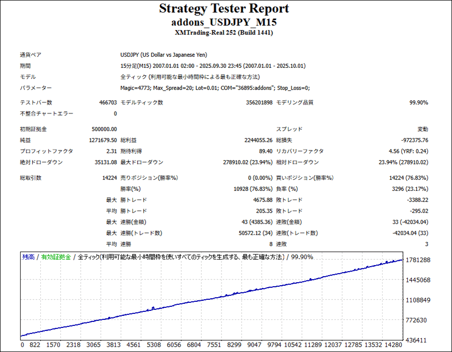| 初期証拠金 | 500,000円 | 勝率 | 76.57% |