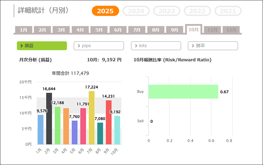 | 平均利益 | 205円 | 最大利益 | 4,675円 |
