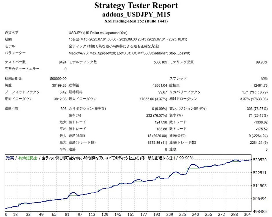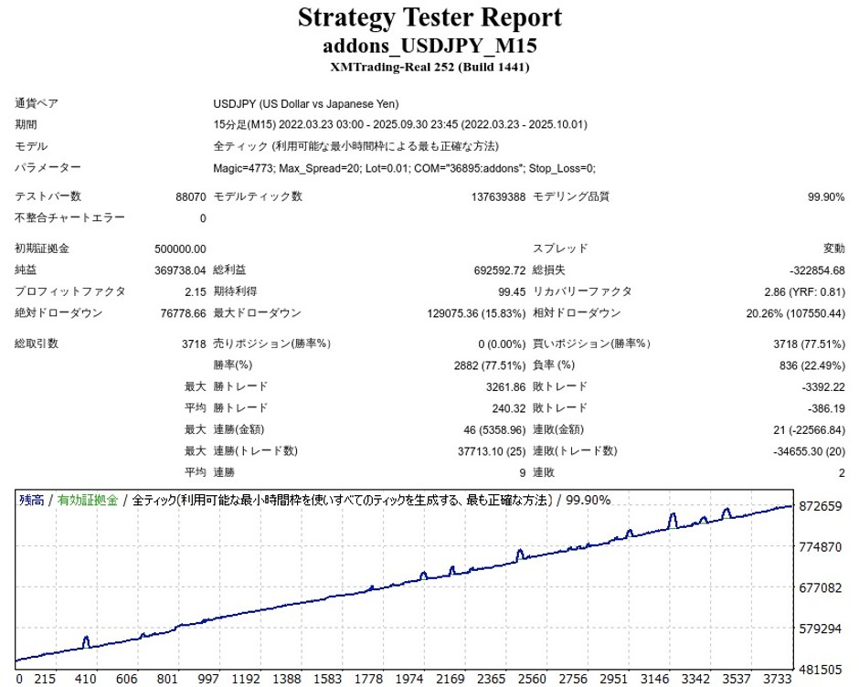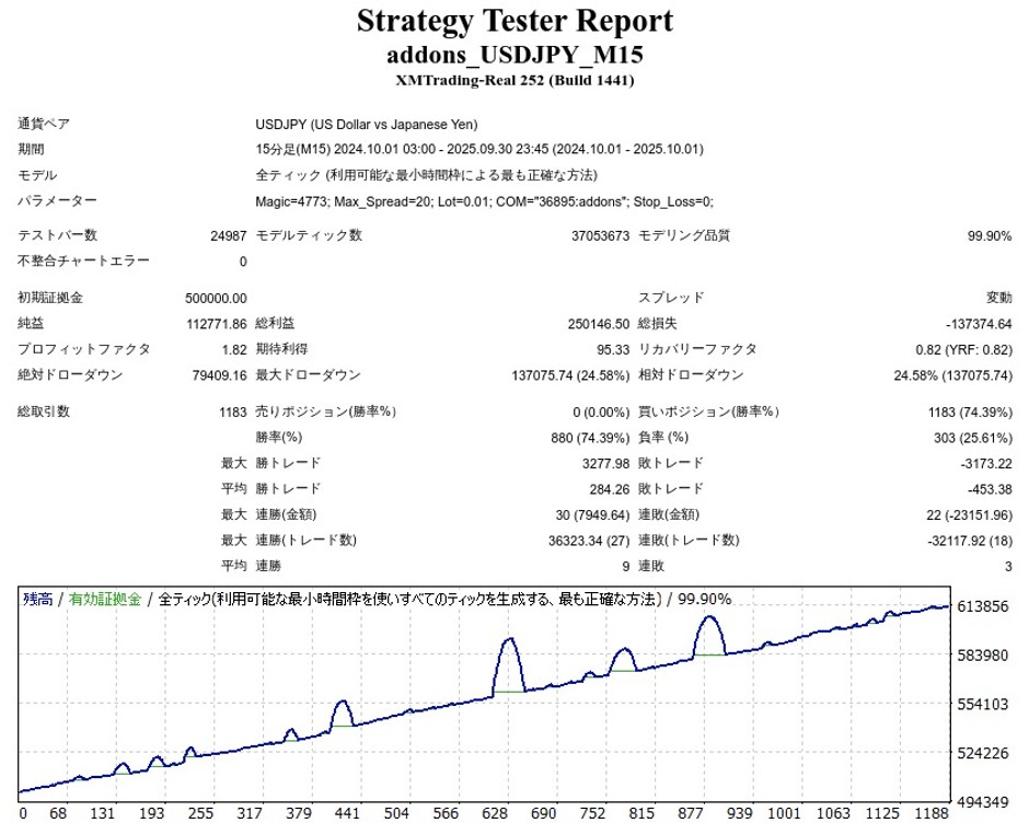 addonsはUSDJPY専用でマーチンゲールなしのナンピンEAです。