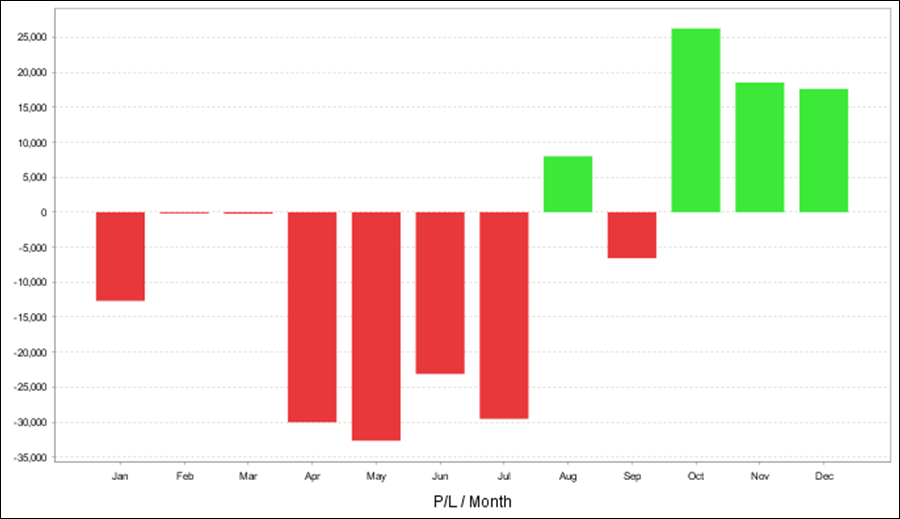 2022年はプラスの月が多く、利益も大きくなっています。