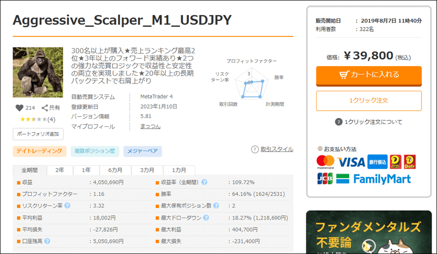 まっつんさんはゴゴジャンで出品しているのはAggressive_Scalper_M1_USDJPYのみのようです。