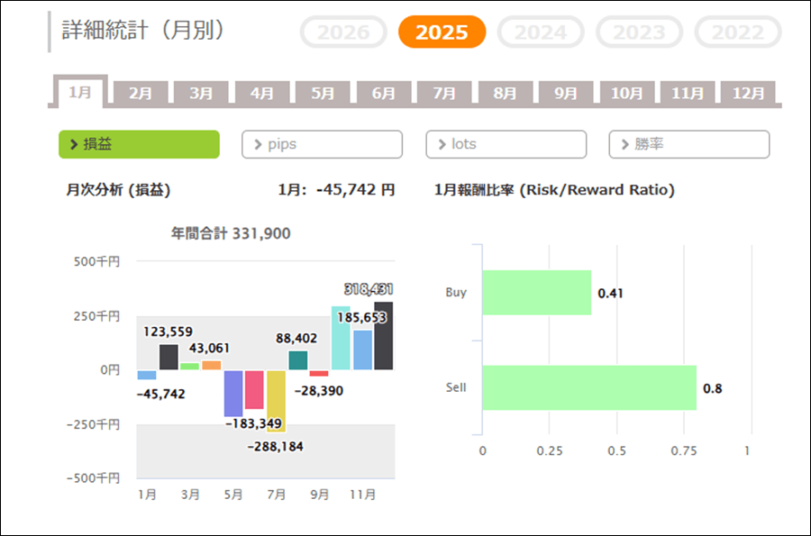 月次分析を見ると、2025年はトータルでプラスです。