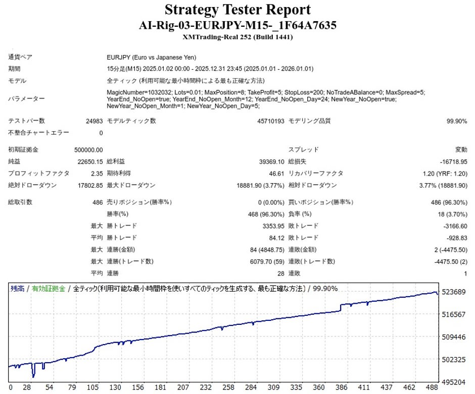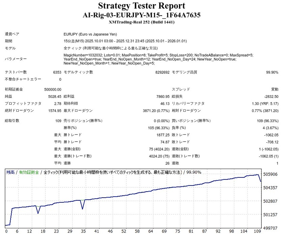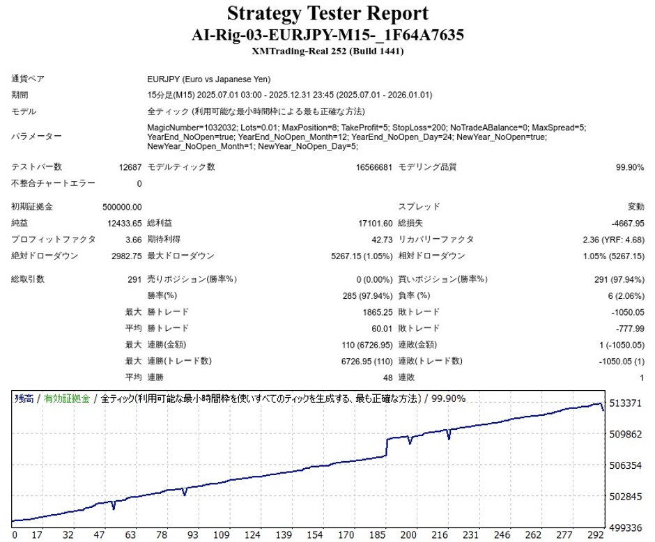 AI Rig 03(サード) -EURJPY M15-のEA検証結果