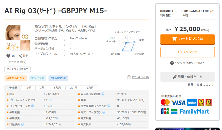 AI Rig 03(サード) -GBPJPY M15-の詳細を確認する高安定性スキャルピングEA 「AI Rig」シリーズ第3弾『AI Rig 03 -GBPJPY-』 勝率ほぼ100% | GogoJungle