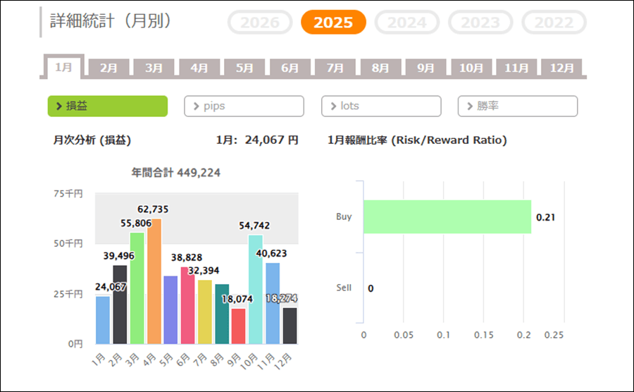 月次分析を見ると、2025年は今のところトータルでプラスです。2024年は8月に大きくマイナスになっています。