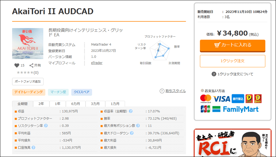 AkaiTori II AUDCADはナンピンEAですが、成績はどうなのでしょうか。