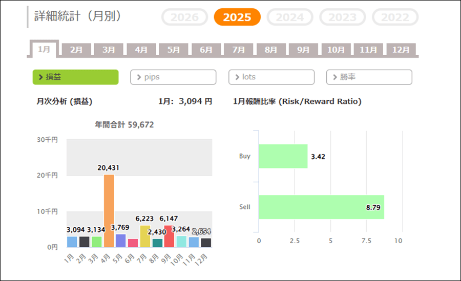 2022年~2025年の月間成績をまとめると合計で+19.8万円の成績となりました。
