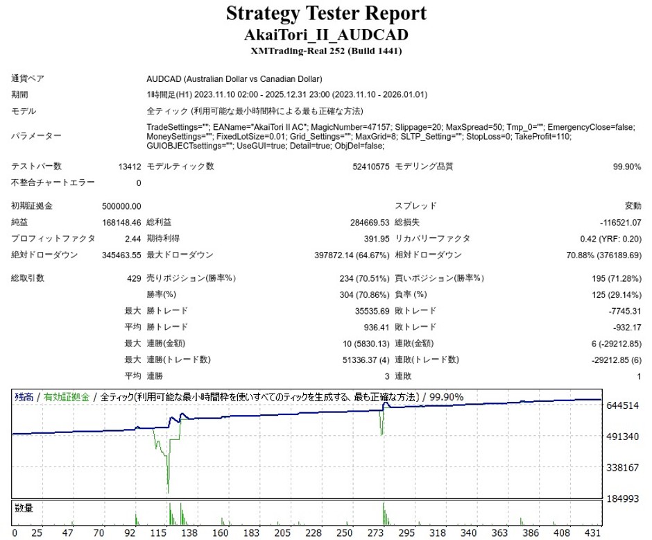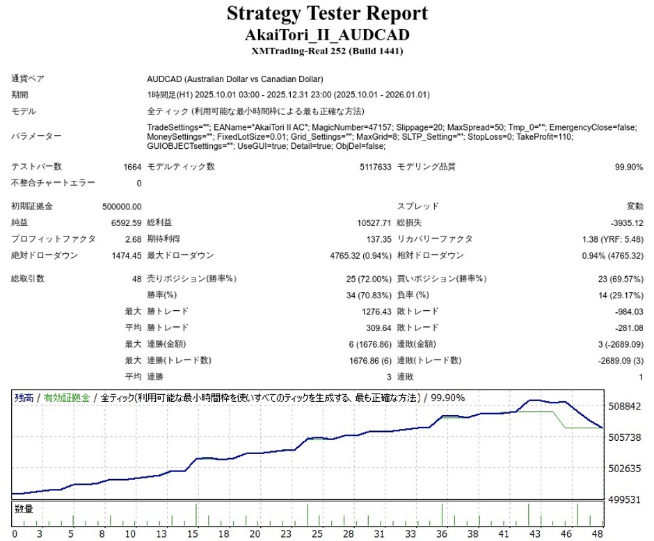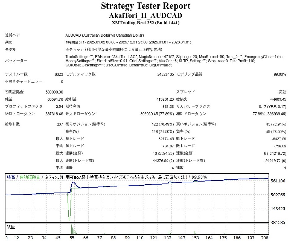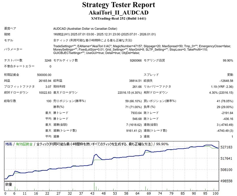 AkaiTori II AUDCADのEA検証結果