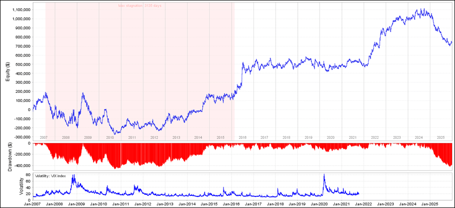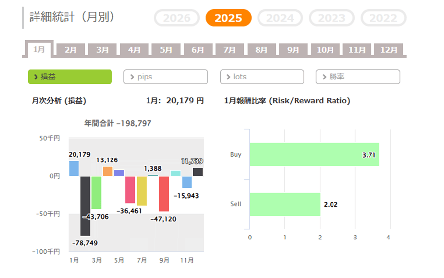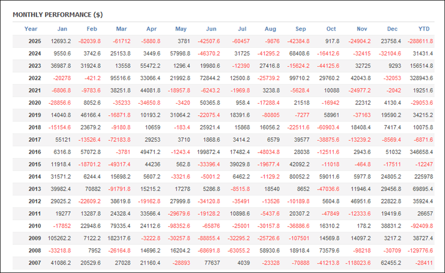 年間成績を見ると、2011年以降はほとんどがプラス成績ですが、2025年はマイナスになっています。