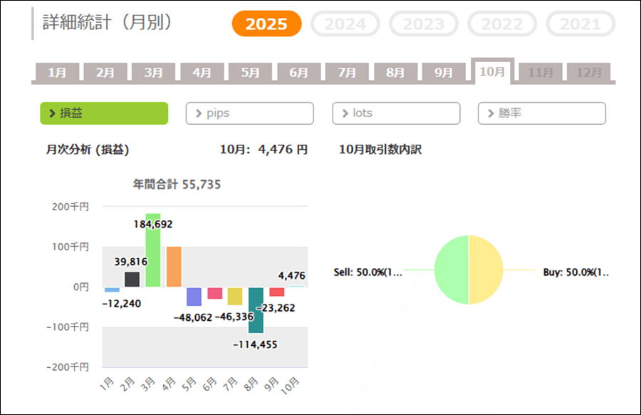 月次分析を見ると、2025年は今のところトータルでプラスです。