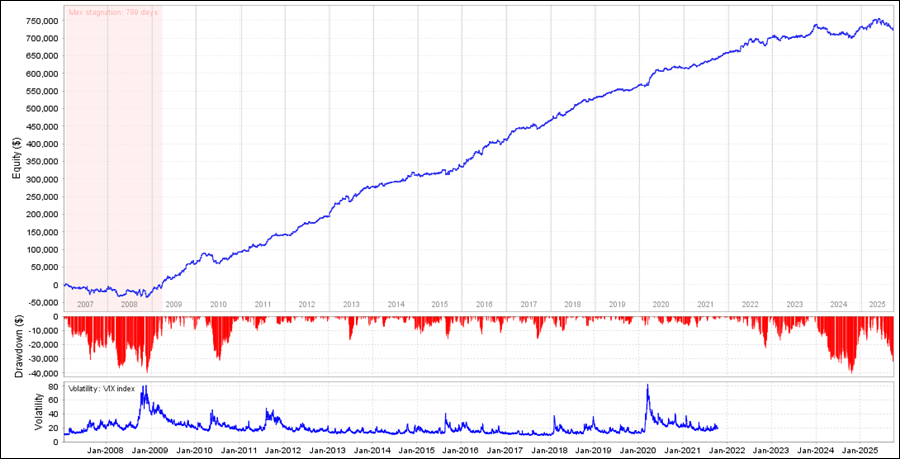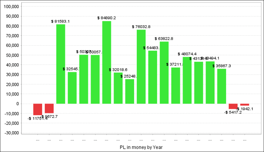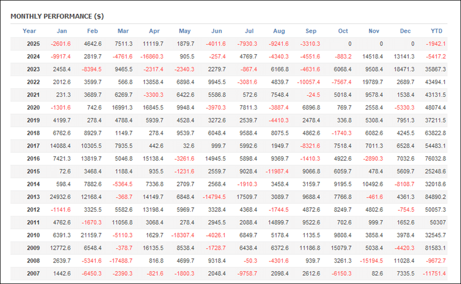 年間成績は2007年と2008年以外はすべてプラスとなり、非常に良い結果となっています。直近の2024年が成績が落ちています。