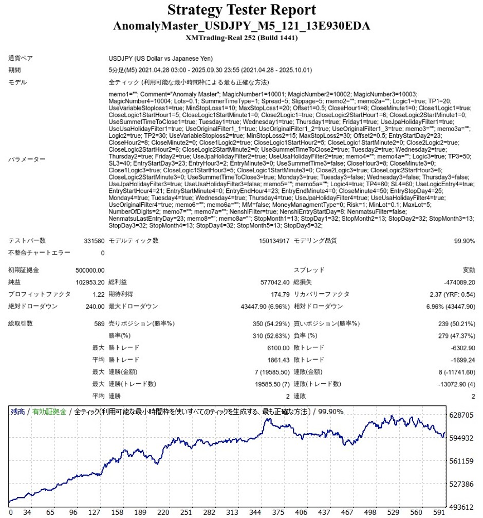 アノマリーマスターの詳細を確認する複数のロジックで構成されたUSDJPYのEAです。本システムは実需に逆らわないトレードをするため、安定した資産運用を行うことができます。 | GogoJungle
