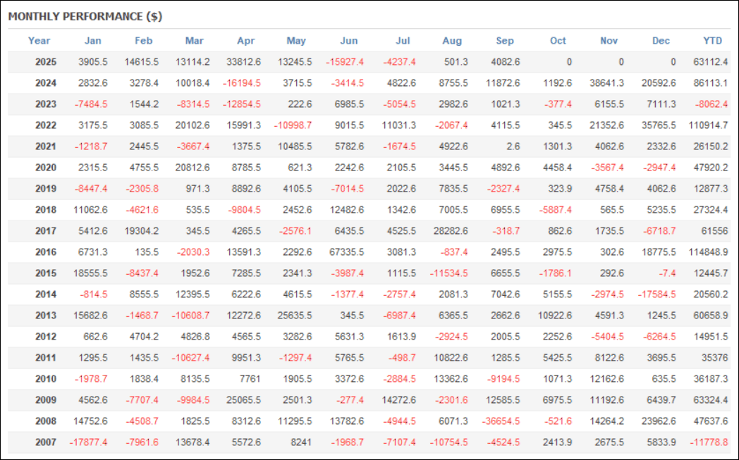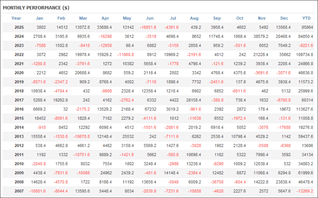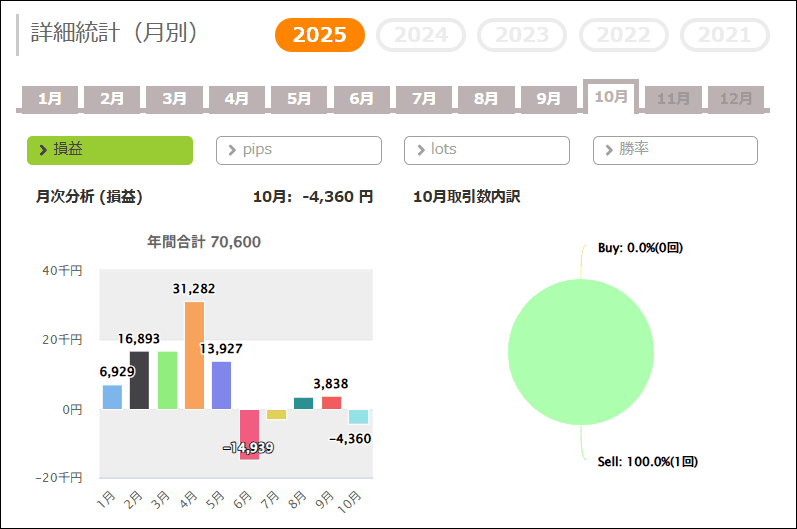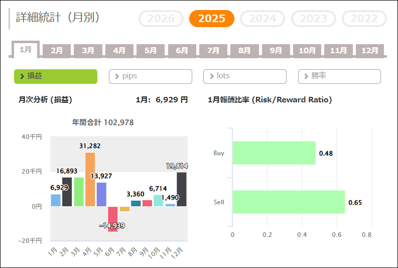 月次分析を見ると、2025年は今のところプラス成績で、2024年、2023年もトータルでプラスです。