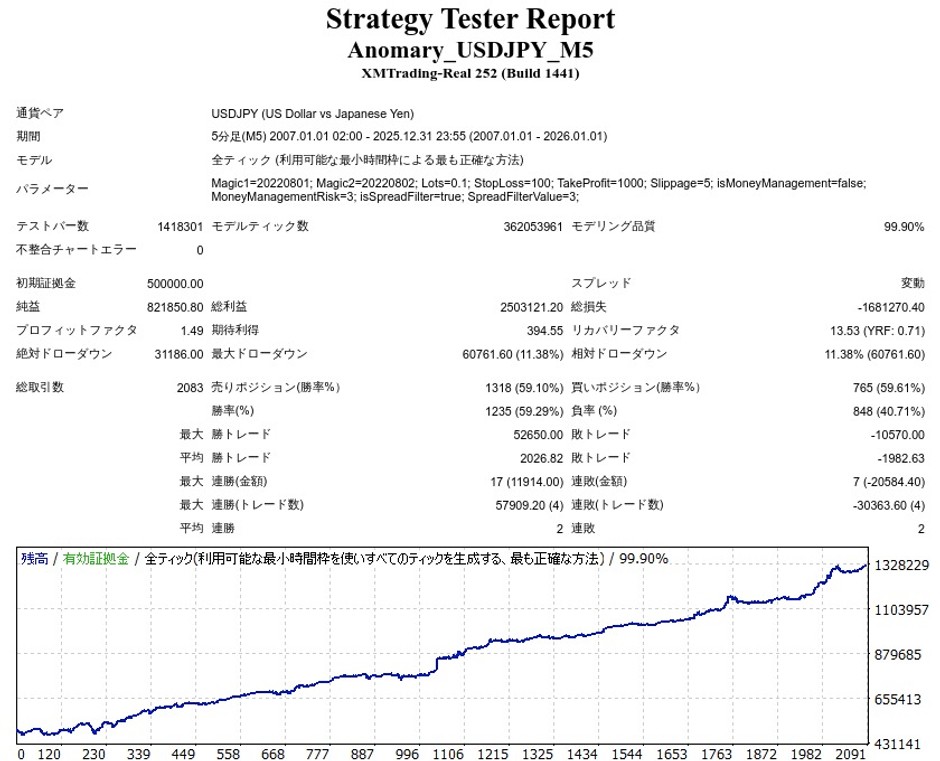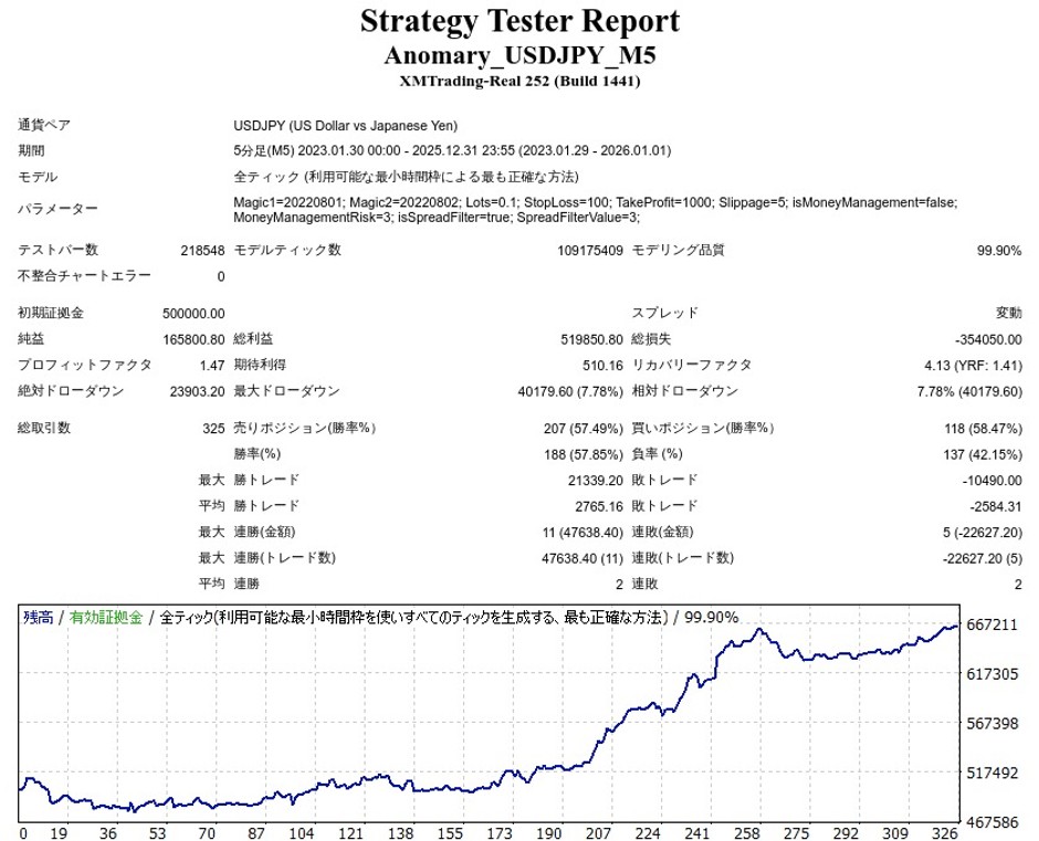 Anomary_USDJPY_M5はUSDJPYのアノマリーEAですが、成績はどうなのでしょうか。
