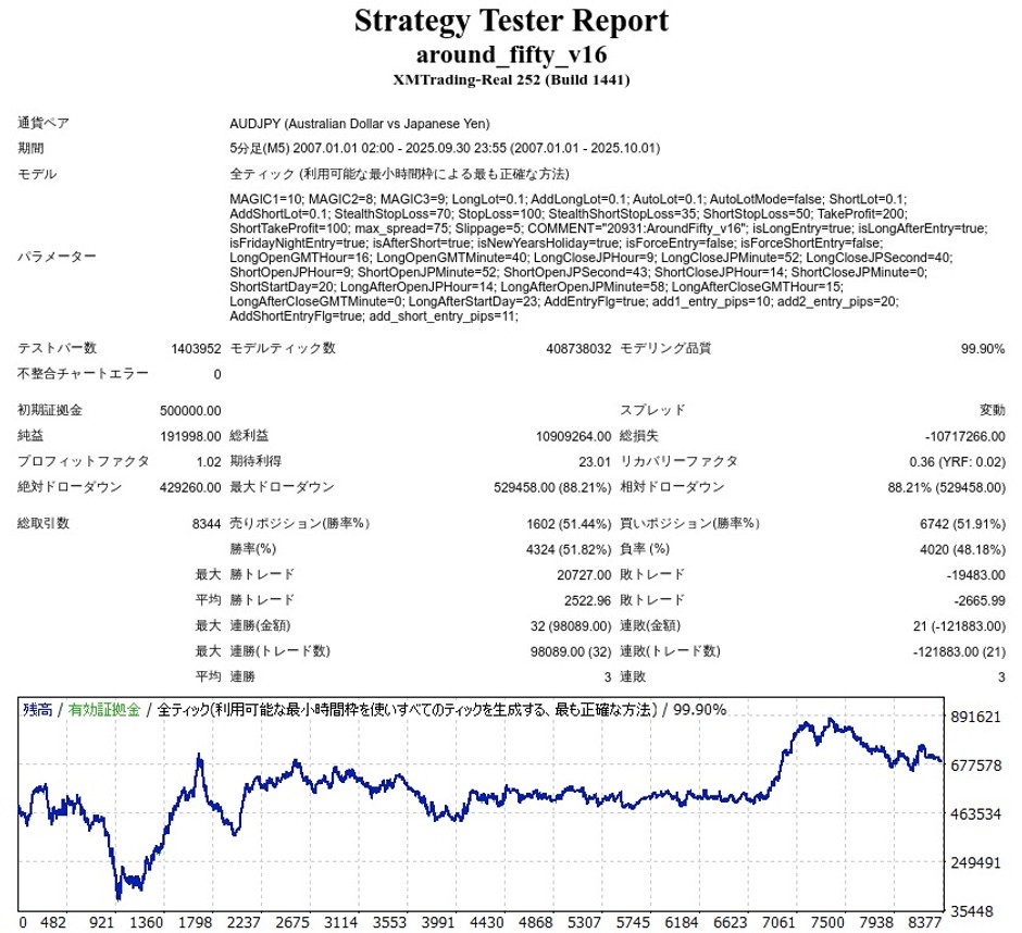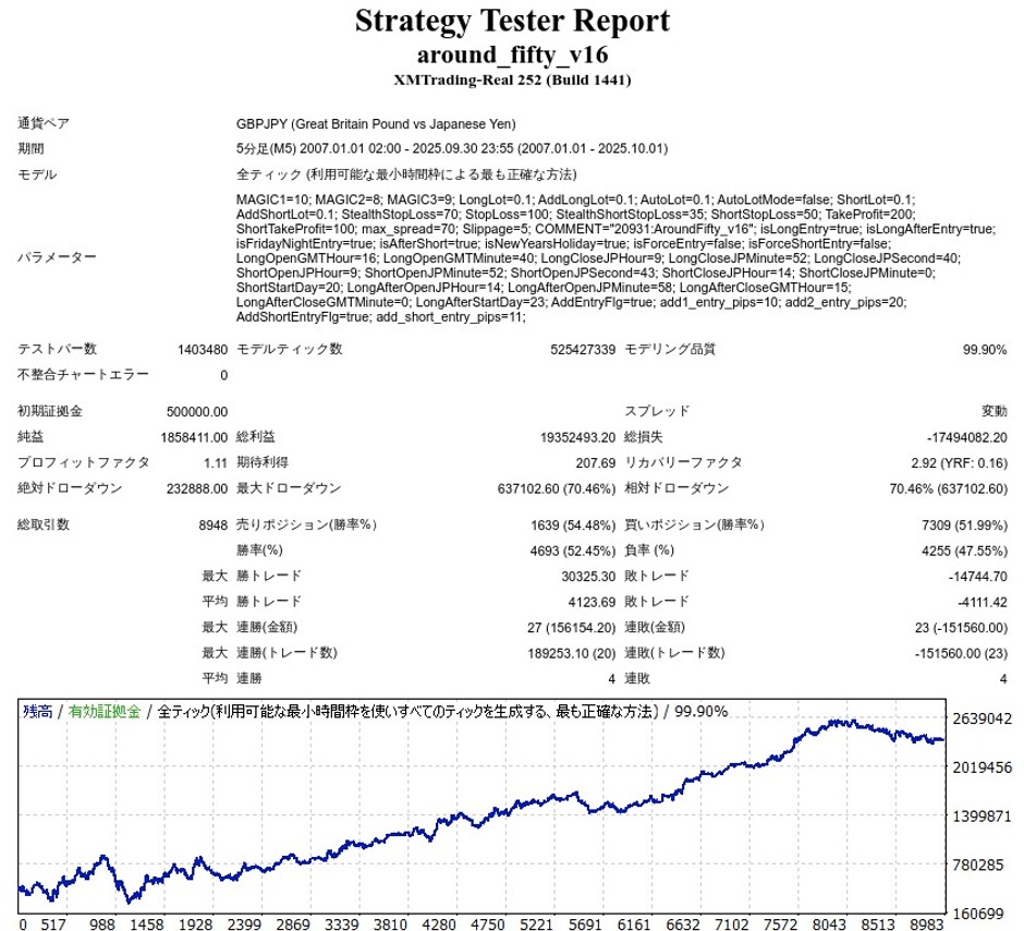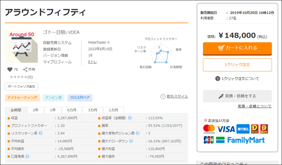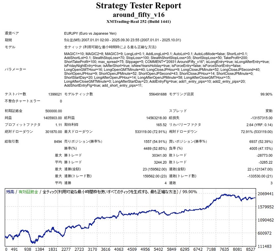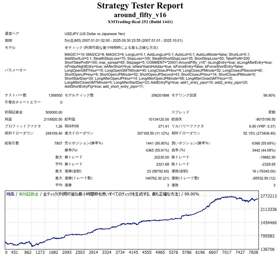 アラウンドフィフティは複数通貨ペア対応で、ゴトー日を狙ったEAのようですが、成績はどうなのでしょうか。