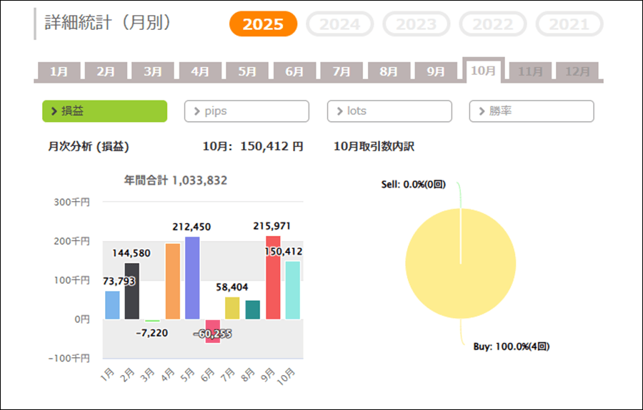 月次分析を見ると、2025年は今のところトータルでプラスです。