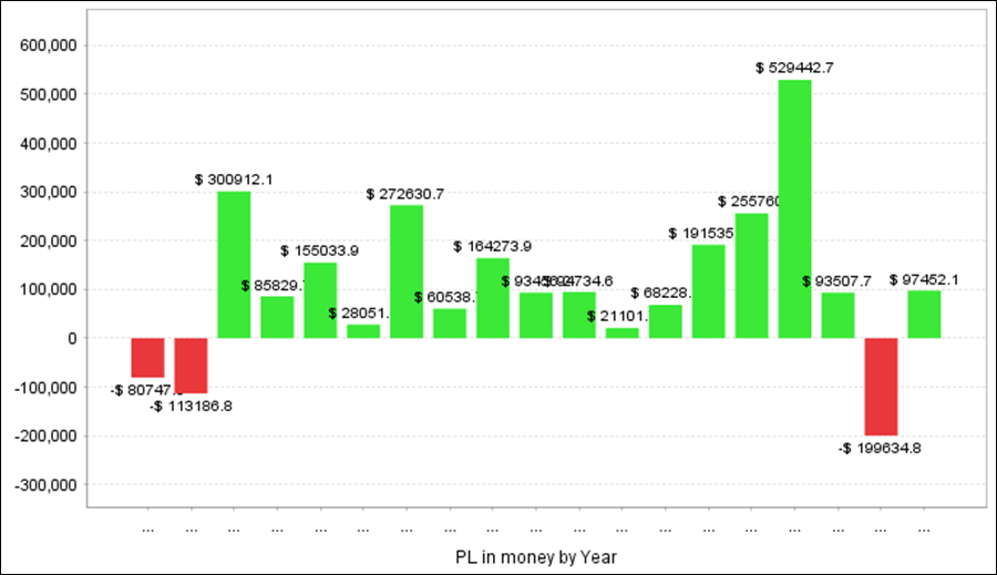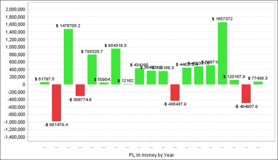 GBPJPYは過去18年で+185.8万円と一番良い結果でした。