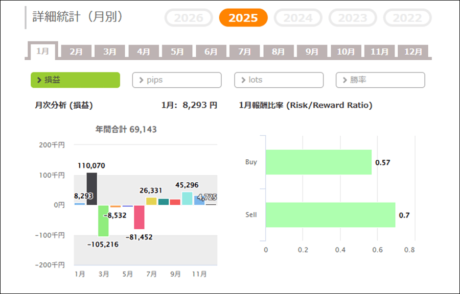 月次分析を見ると、2025年はトータルでプラスです。