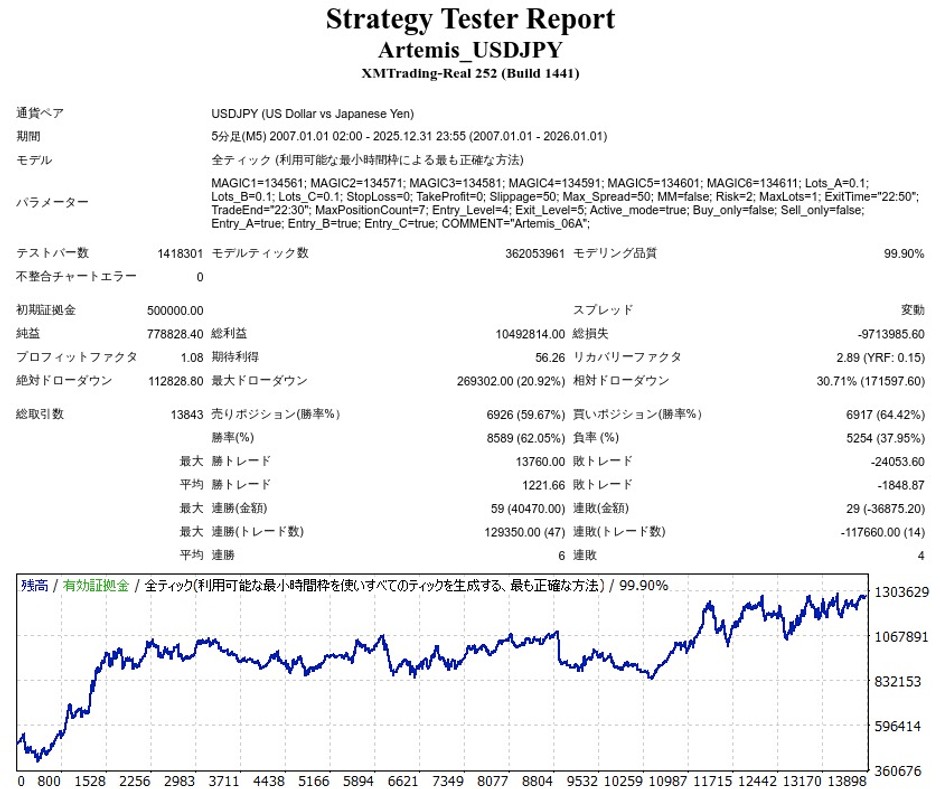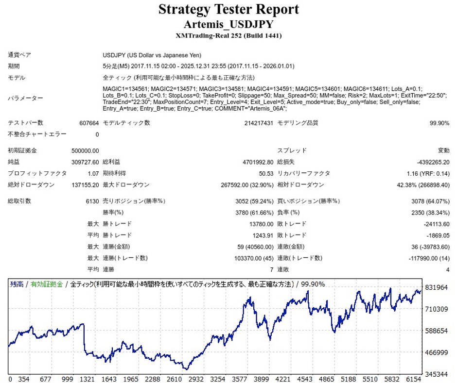 Artemis_USDJPYのEA検証結果
