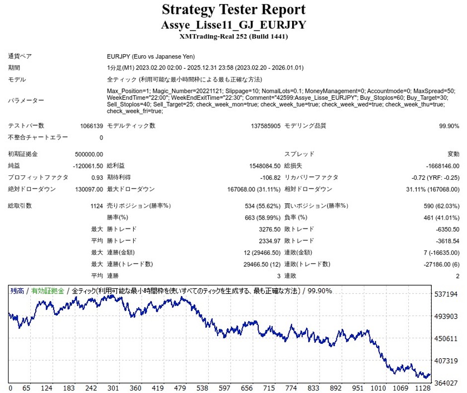 Assye Lisse LR EUR/JPY LimitedのEA検証結果