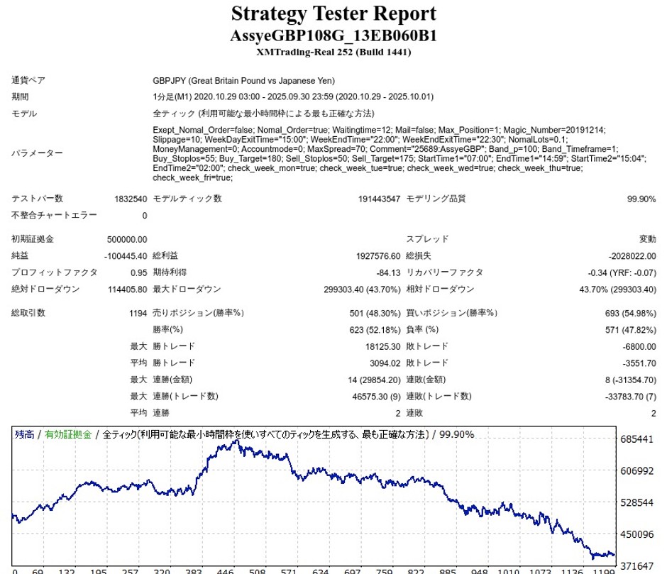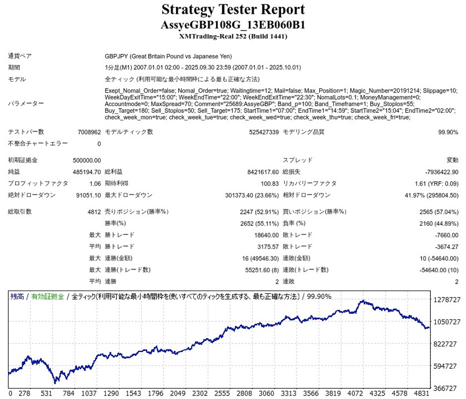 AssyeGBPのリリース後のバックテスト結果(≒フォワード結果)は以下のようになりました。