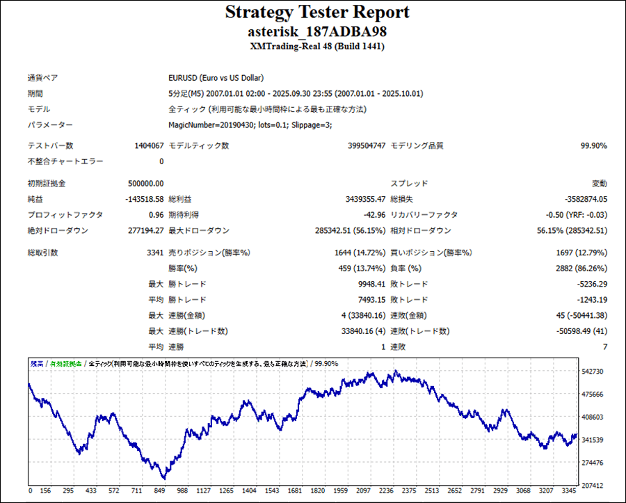 | 初期証拠金 | 500,000円 | 勝率 | 13.74% |