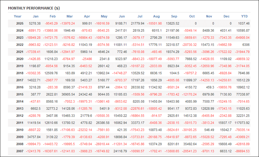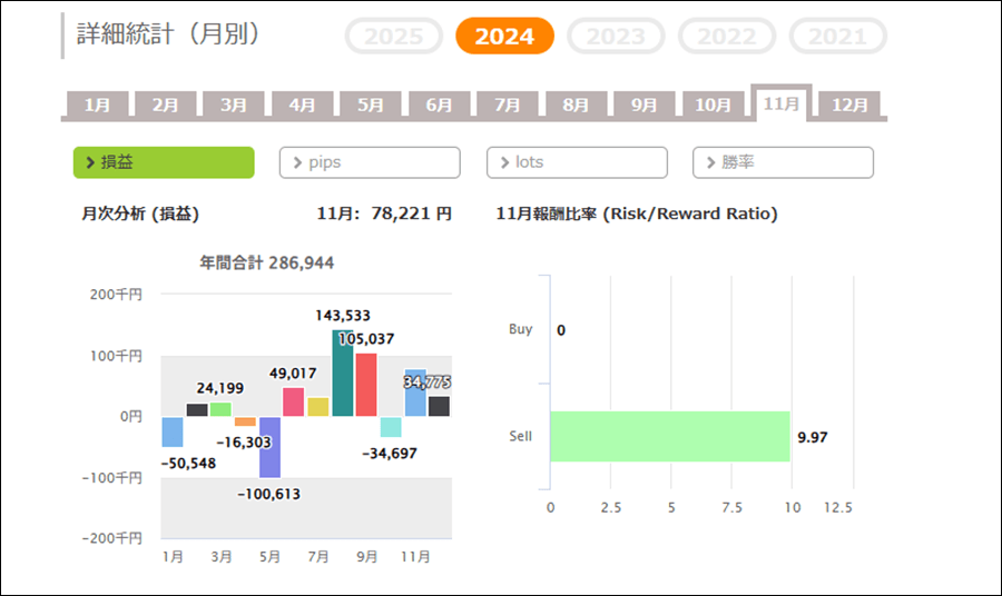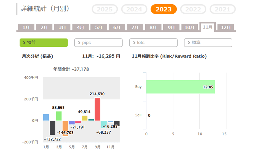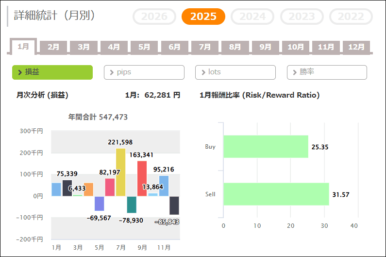 月次分析を見ると、2025年、2024年はトータルでプラスです。2023年もトータルでマイナスになっています。
