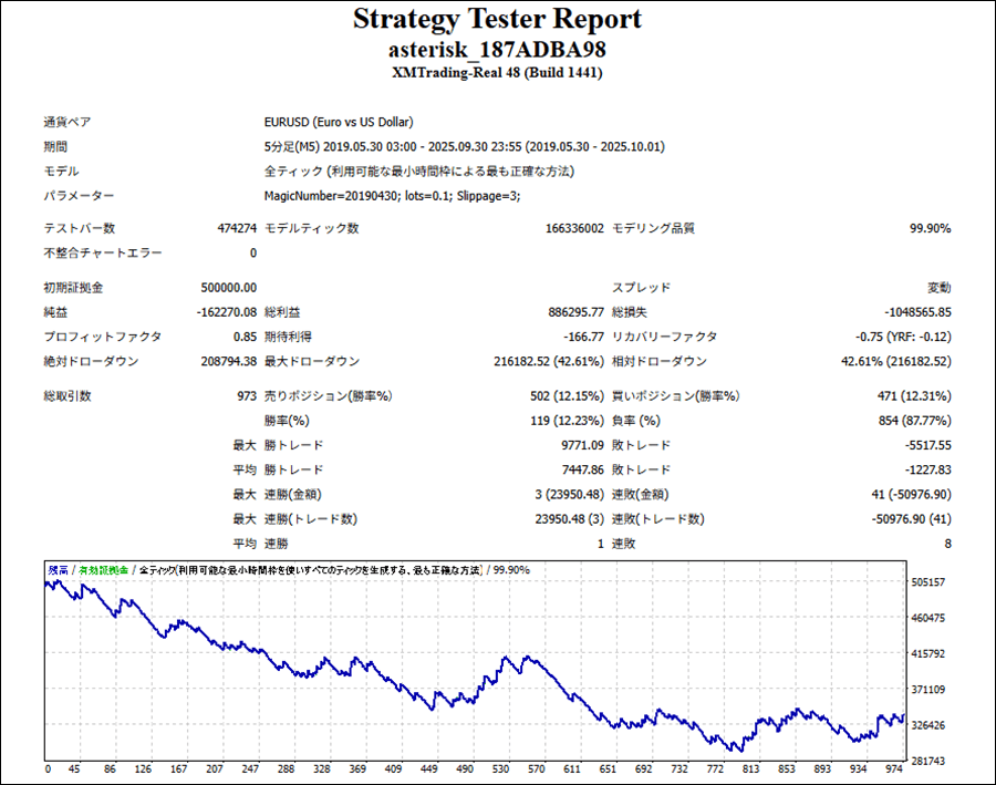| 初期証拠金 | 500,000円 | 勝率 | 12.23% |