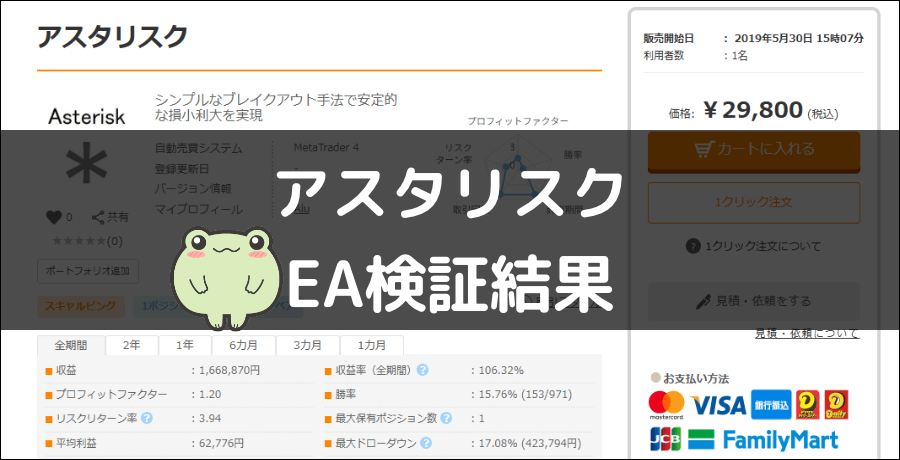 アスタリスクはEURUSD専用のEAですが、成績はどうなのでしょうか。