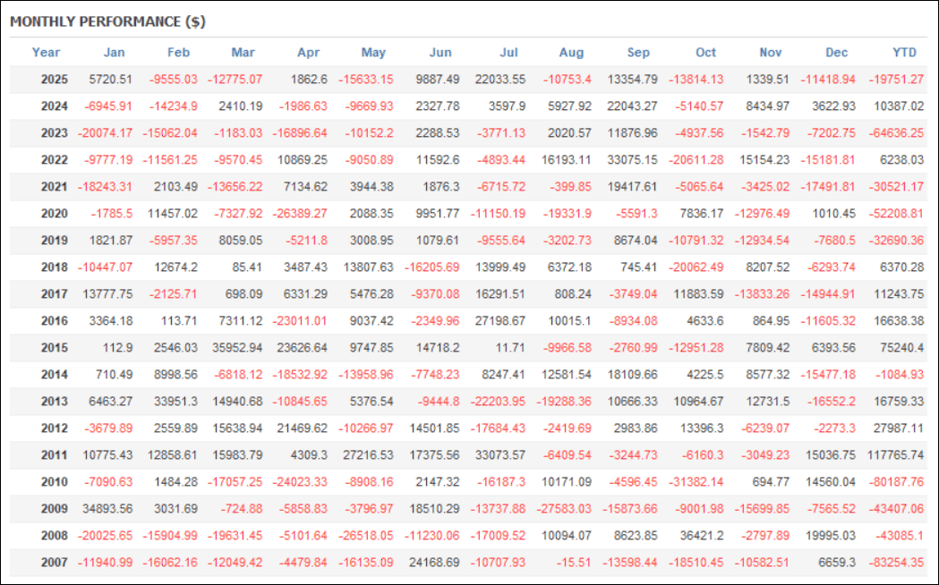 2025年はマイナス成績でした。