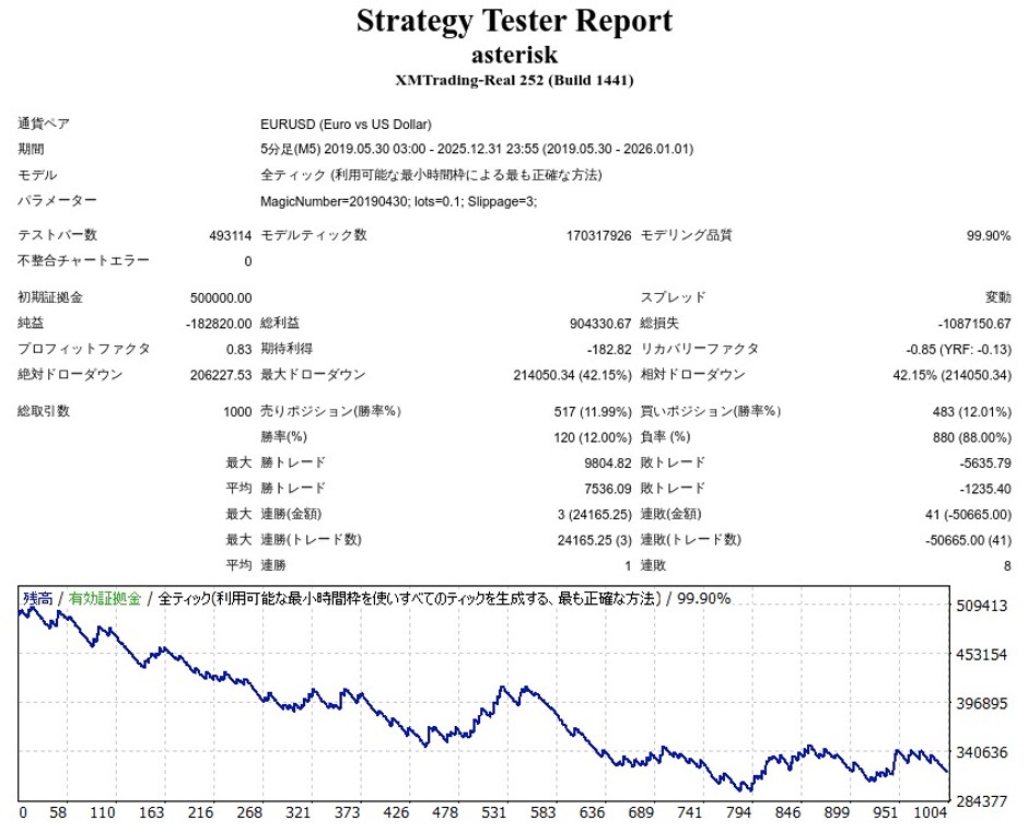 | 初期証拠金 | 500,000円 | 勝率 | 12.00% |