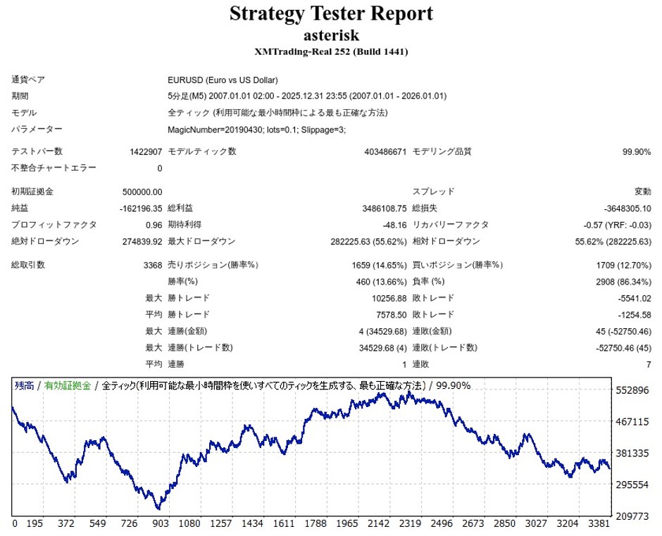 | 初期証拠金 | 500,000円 | 勝率 | 13.66% |