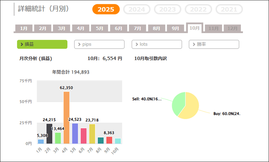 月次分析を見ると、ナンピン系ですので毎月利益を積み上げています。