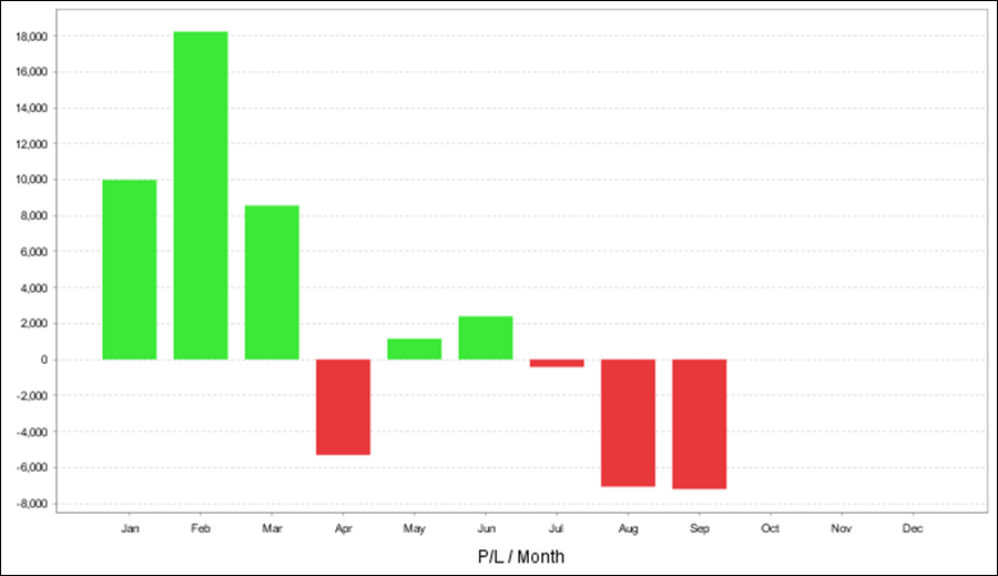 年次・月次の成績、年次の損益グラフ