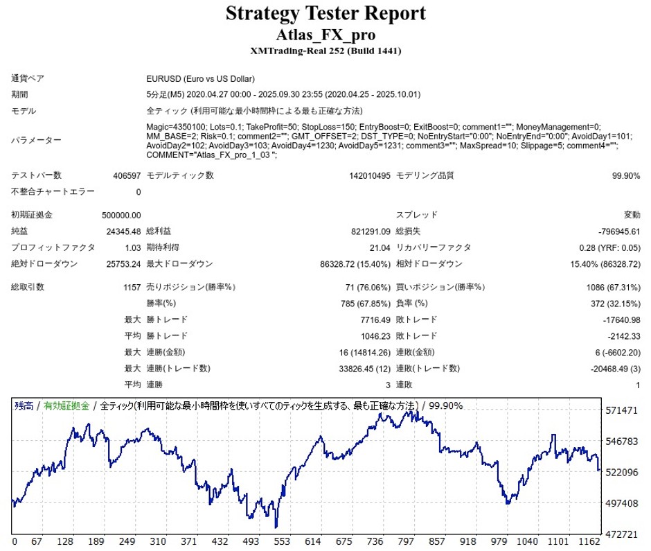 LET’S REALの有料EA「Atlas(pro)」をTDS(Tick Data Suite)を使ってバックテストを行ったので、結果を紹介して行きます。
