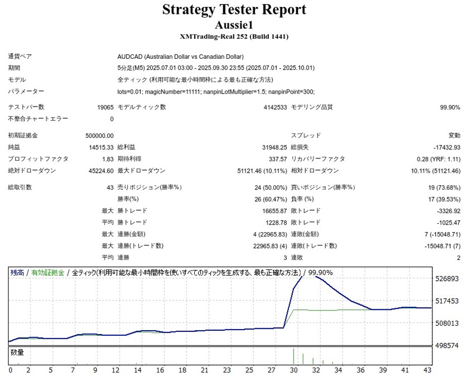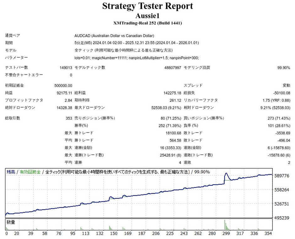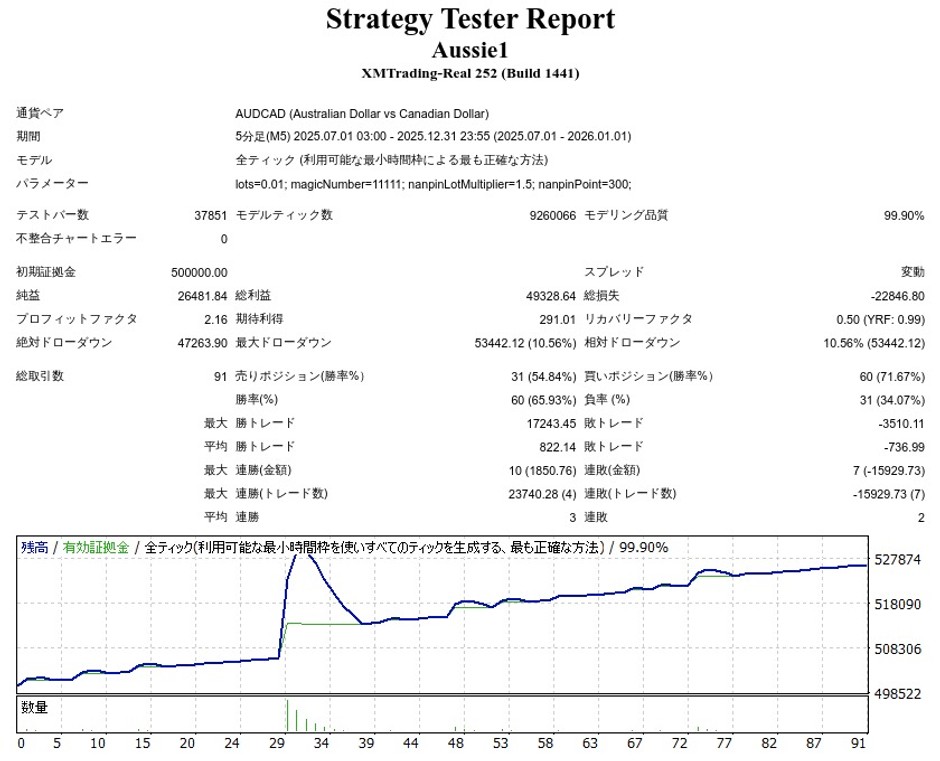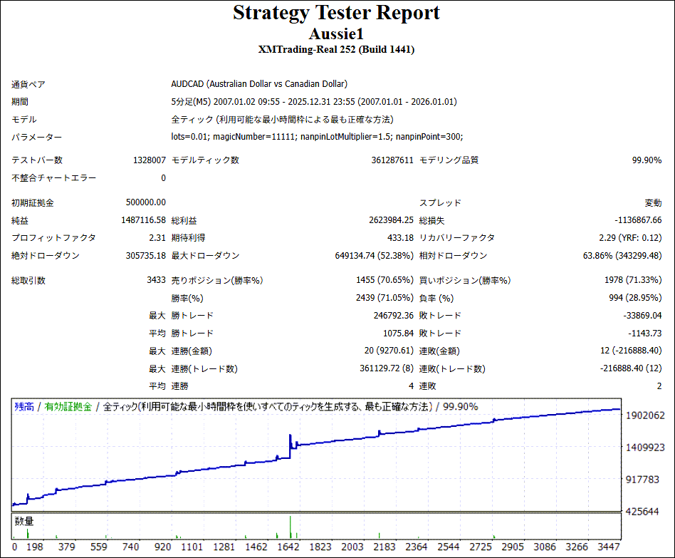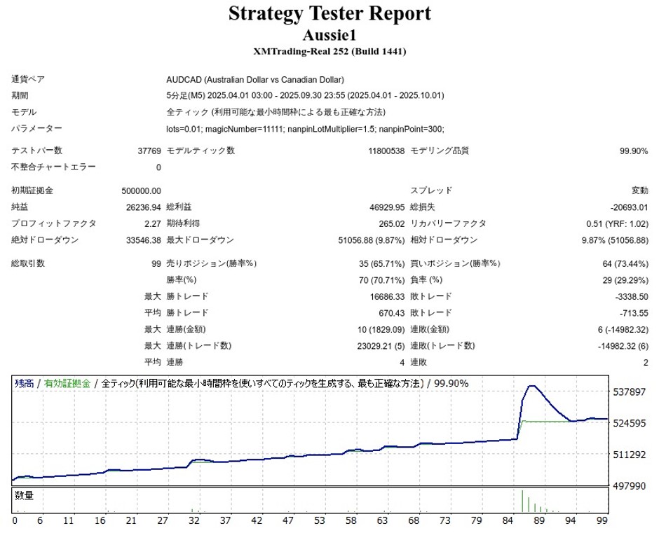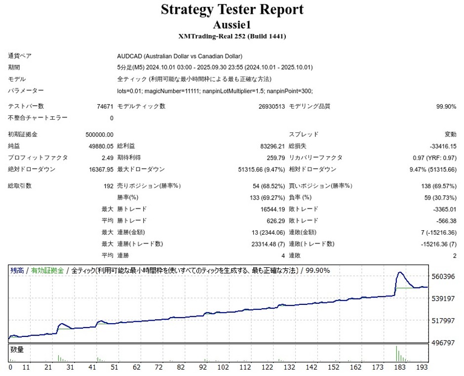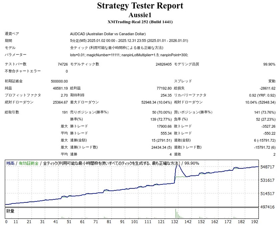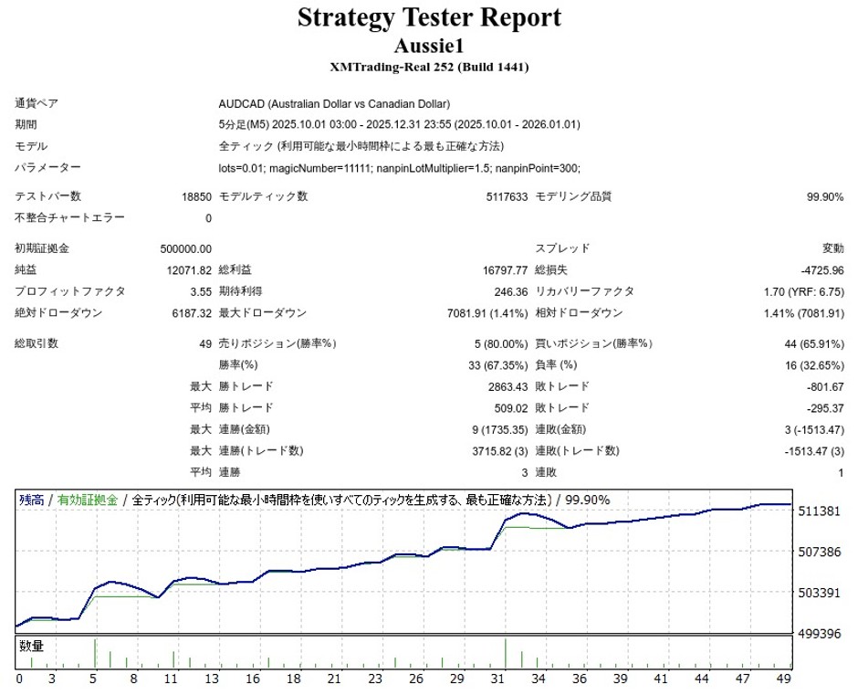 Aussie1 AUDCADはナンピンEAですが、成績はどうなのでしょうか。