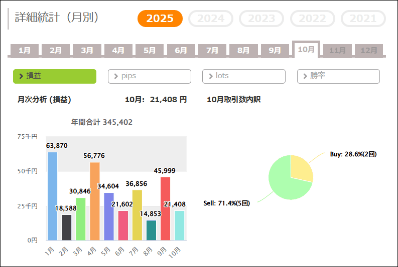 | 平均利益 | 5,342円 | 最大利益 | 77,961円 |