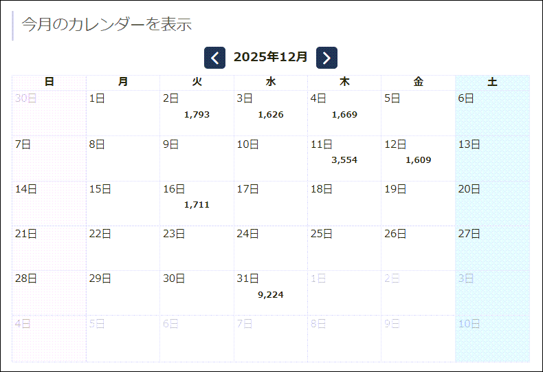 | 9月 | 10月 | 11月 | 12月 |
