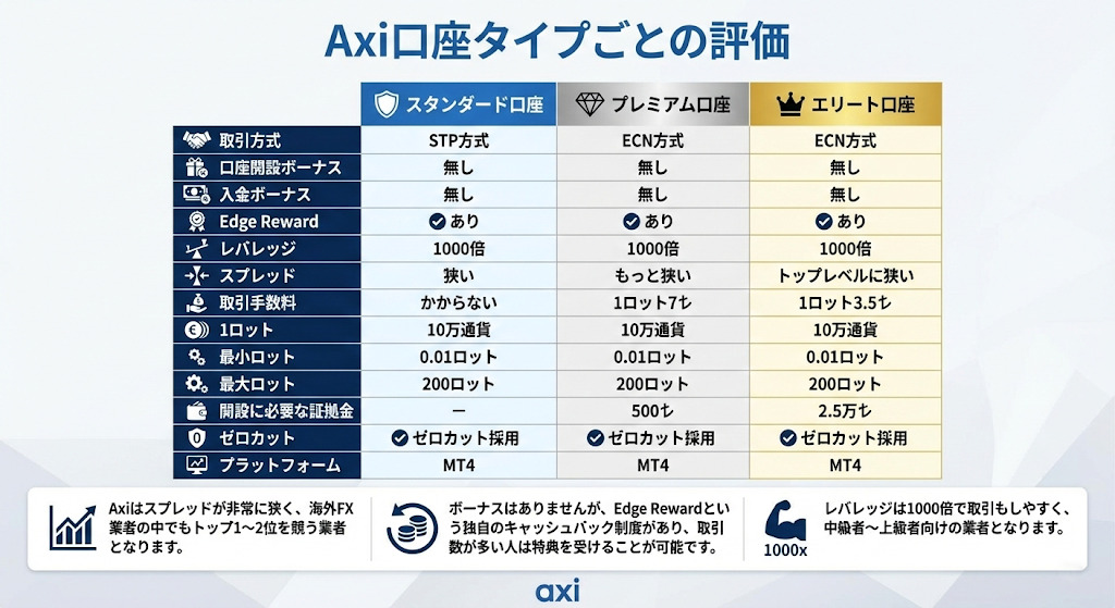 Axi口座タイプごとの評価