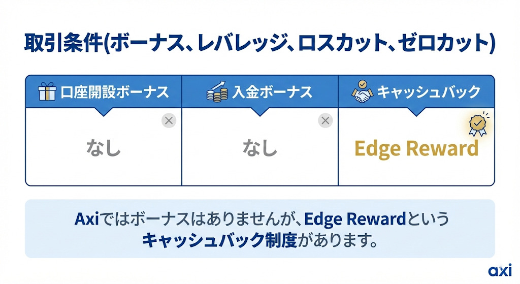 Axiではボーナスはありませんが、Edge Rewardというキャッシュバック制度があります。