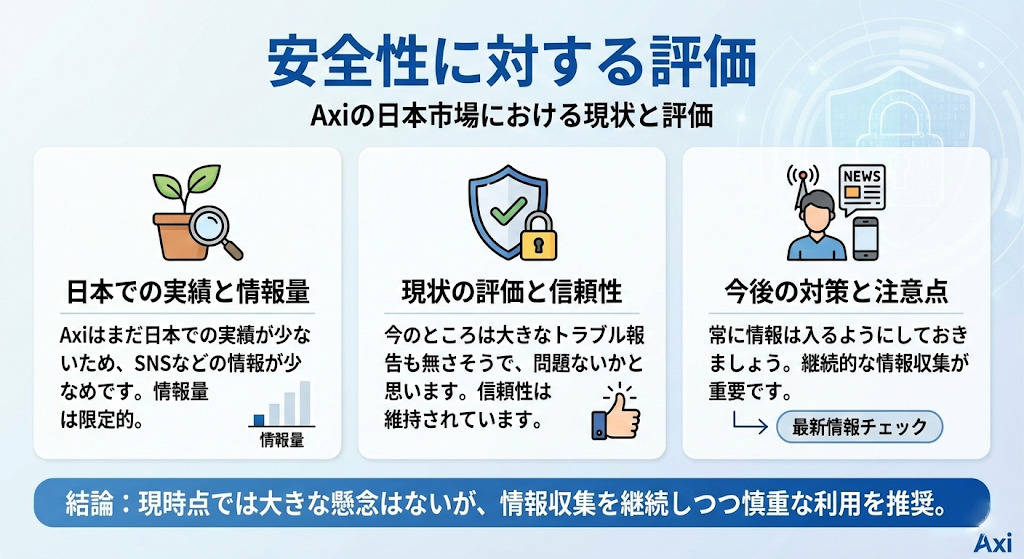 Axiはまだ日本での実績が少ないため、SNSなどの情報が少なめです。